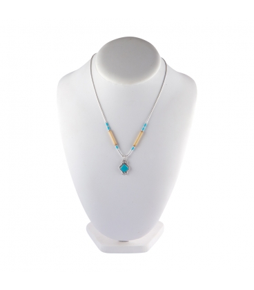 Collier "Liquid Silver" , pendentif carré Turquoise et Bambou. Pour femme et enfant .