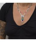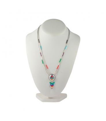 COLLIER "Concho" AMÉRINDIEN ,"LIQUID SILVER" PAMPILLE ET PIERRES MULTICOLORES, FEMMES ET ENFANTS